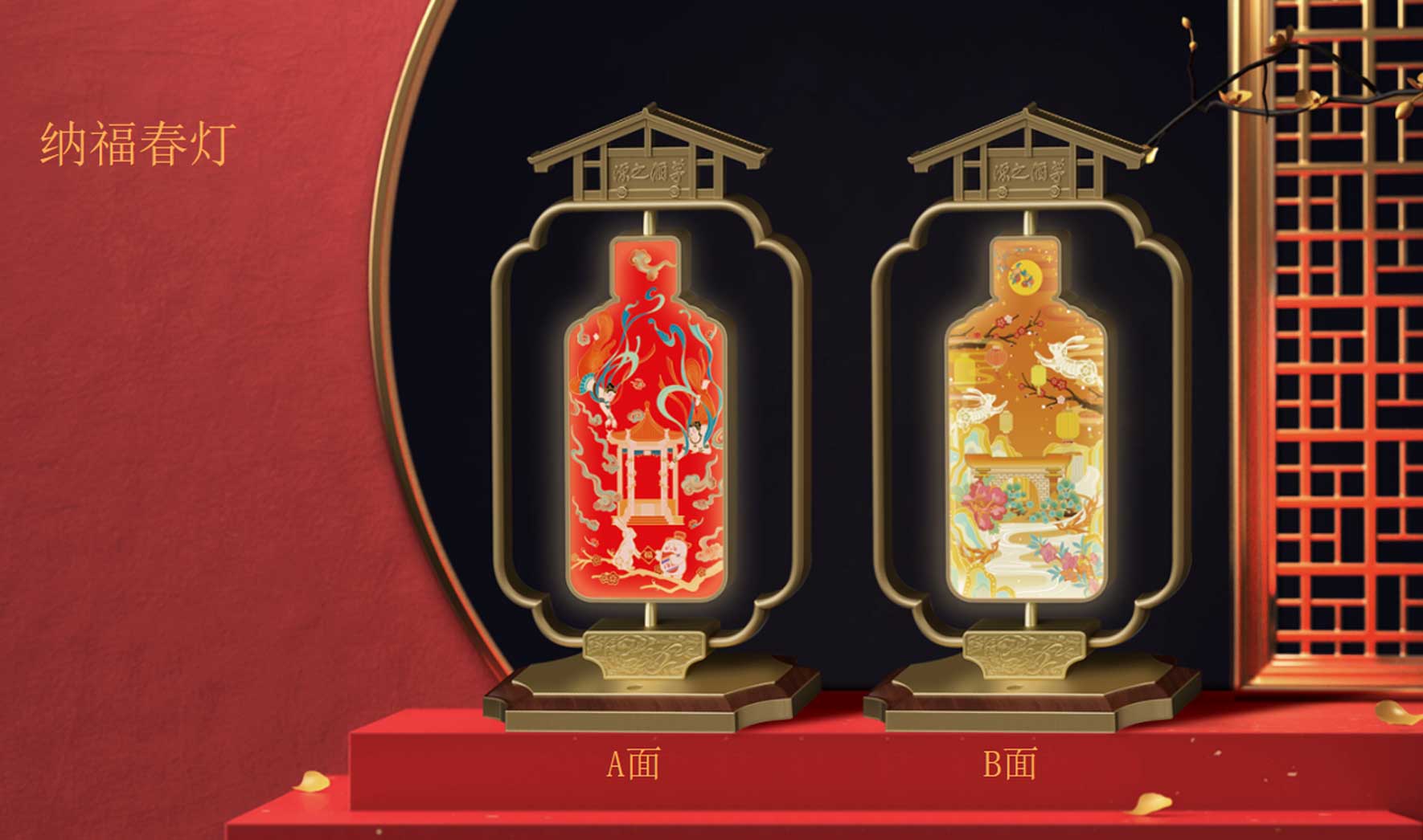 將茅臺酒文化與中國春節(jié)花燈文化相結合把茅臺酒釀酒工業(yè)遺產(chǎn)群的門匾“茅酒之源融入傳統(tǒng)春燈造型中,點亮春燈,祥和光輝相互照映設計師在延續(xù)茅臺經(jīng)典品牌印記的同時,在春燈上用了原創(chuàng)插畫和茅型瓶經(jīng)典符號做了創(chuàng)變可兩面翻轉增添節(jié)日樂趣。