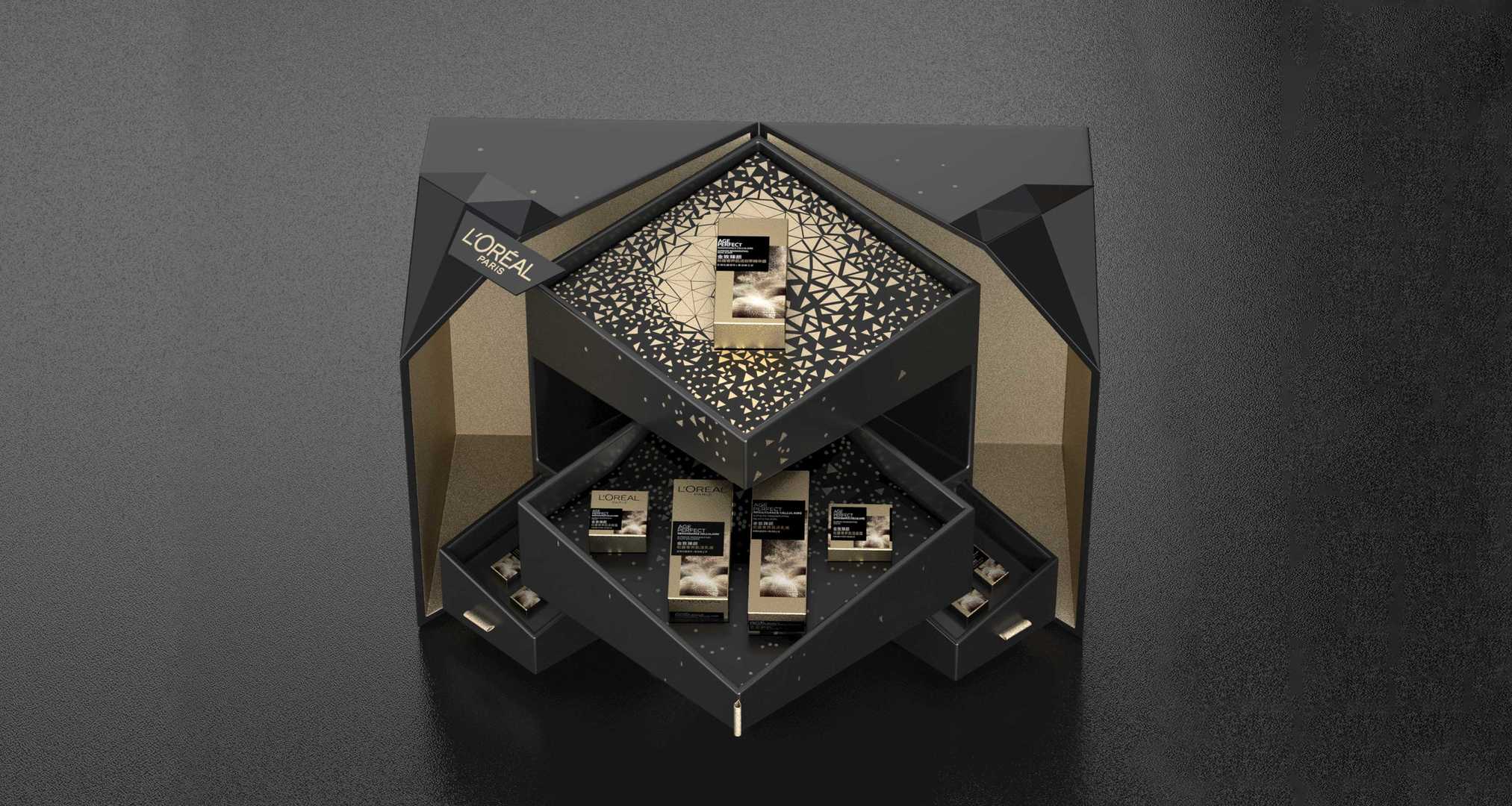 包裝結構靈感來自鉆石,將鉆石的切割運用在包裝上,同時打開包裝,俯視效果為鉆石型,專屬性更強。