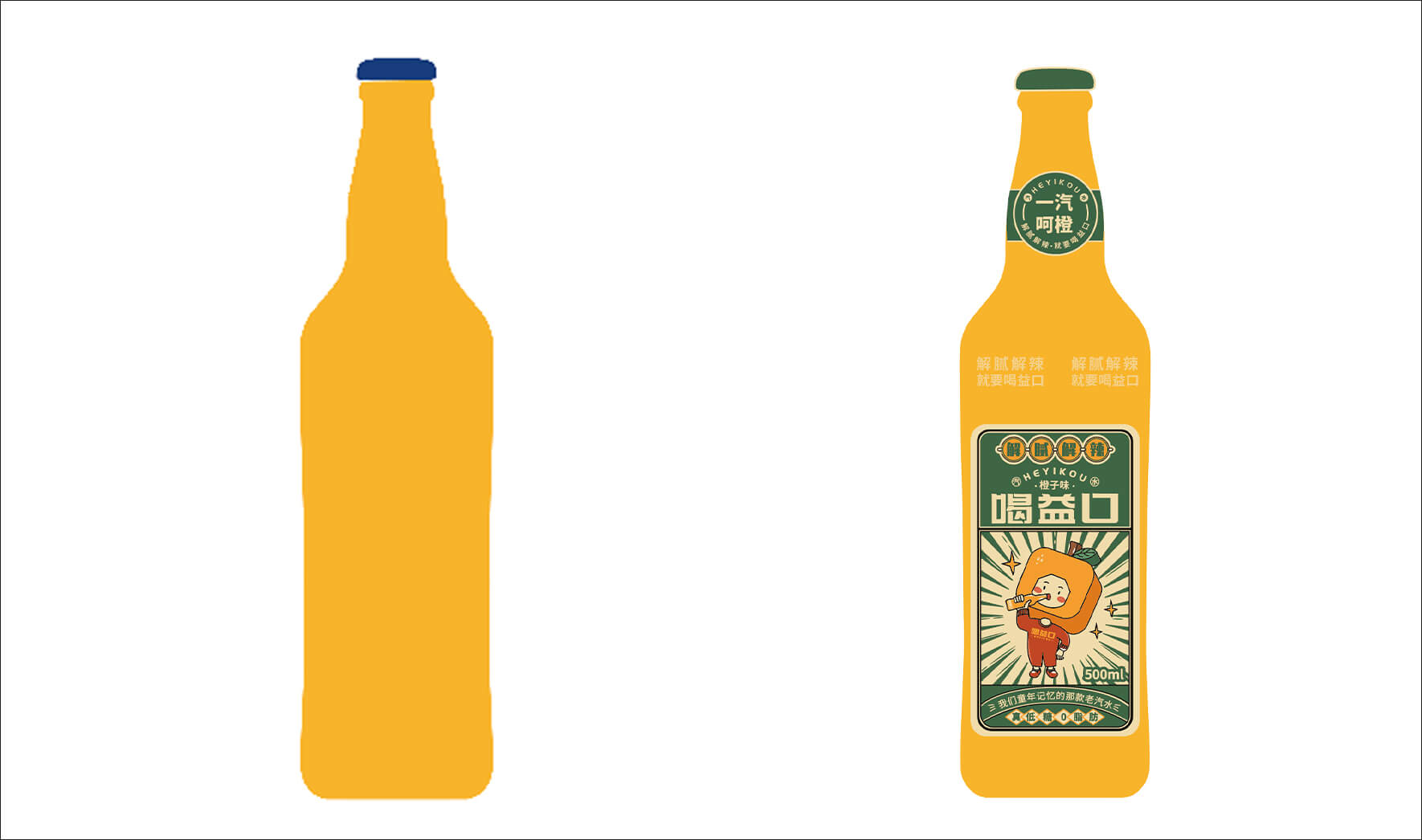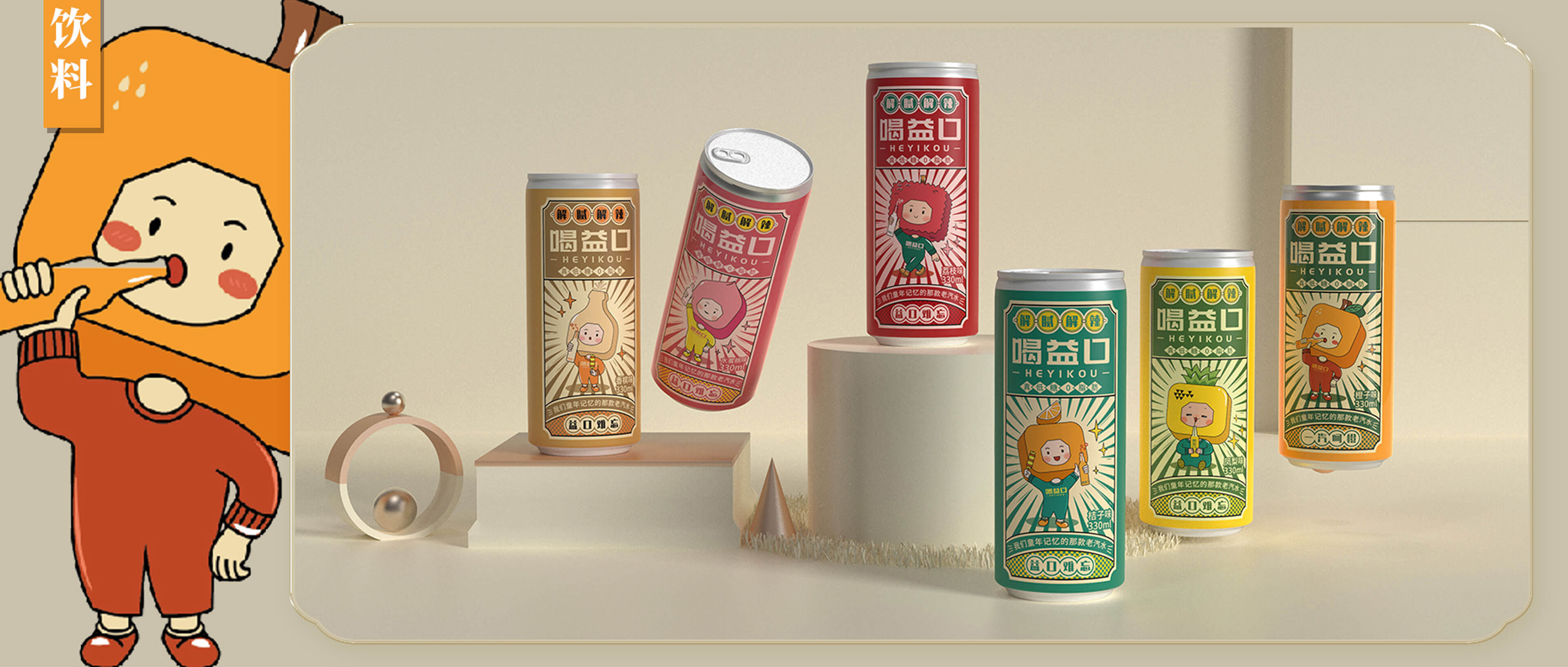 喝益口,華抒飲品企業(yè)旗下的汽水品牌,在南方有較深的線下渠道資源。當(dāng)前國(guó)貨興起,老汽水紛紛回歸,分割新型碳酸飲料市場(chǎng)。為此,華抒飲品預(yù)打造一款橙汁味汽水以適應(yīng)市場(chǎng)需求,并與柏星龍合作打造喝益口品牌資產(chǎn)和產(chǎn)品形象。要解決的問(wèn)題:幫助品牌建立專屬形象,提高品牌識(shí)別,從而讓更多的消費(fèi)者認(rèn)識(shí)喝益口,記住喝益口并且愿意購(gòu)買喝益口。